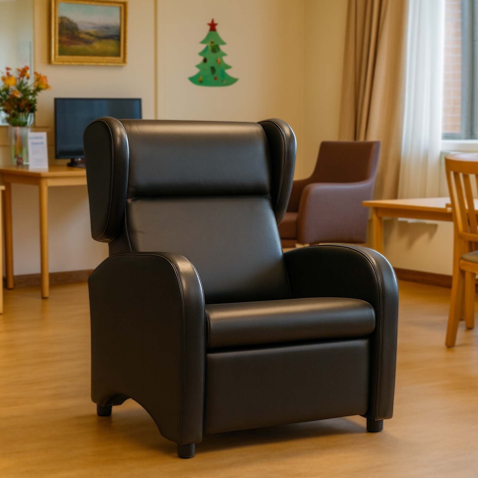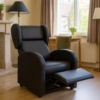 De Cuba F XXL is een fauteuil voor personen tot een gewicht van 200 kg. De Cuba F XXL is uitgevoerd met ergonomische gevormde rugleuningen inclusief comfortabele hoofdsteun. Daarnaast beschikt de fauteuil voor zware mensen over ‘oren’ aan de zijkant. Dit zorgt ervoor dat de persoon goed in de fauteuil zich geborgen voelt. Daarnaast is de stoel tot 200 kg extra verstevigd in het frame. Optioneel is de fauteuil tot 200 kg uitvoerbaar met wielen. Op deze manier wordt de stoel een transferstoel. Fijn voor een ziekenhuis of een zorginstelling waar patiënten worden verplaatst. De Cuba F XXL is door middel van een mechanisch systeem in ligstand te brengen. Mechanisch betekent een duwtje met de billen naar achteren. Dan gaat de rugleuning naar achteren en komt de voetensteun synchroon omhoog. De Cuba F XXL beschikt over extra brede en lange armleuning wat cliënten helpt met opstaan. Zoekt u echter een sta op stoel tot 220 KG. Zie dan de Cuba F XXL sta op stoel met elektrische bediening. Alle modellen Cuba zijn uitgevoerd met urine-werend kunstleder dat aanvoelt als echt leer en ademt. Dit geeft extra veel zitcomfort voor patiënten. Het kunstleder is MRSA bacterie en brandwerend behandeld en speciaal ontwikkeld voor zorginstellingen en ziekenhuizen. Uiteraard is het eenvoudig te reinigen.