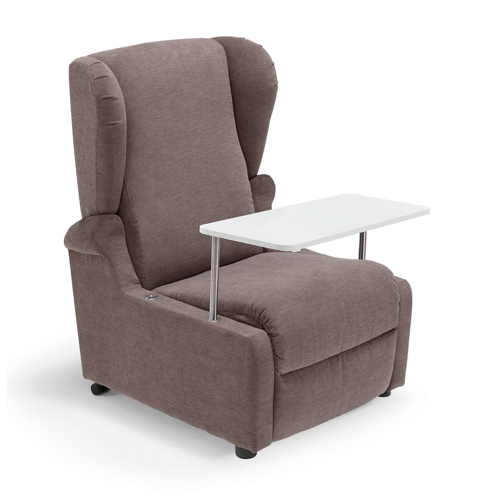 Optioneel is de fauteuil uitvoerbaar met wielen. De fauteuil wordt met vier onafhankelijke wielen die worden bediend met een pedaalhendel aan de achterkant van de stoel. Dit praktische systeem maakt het eenvoudig om de fauteuil van de ene kamer naar de andere te verplaatsen. Daarnaast is het mogelijk om de fauteuil uit te voeren met een batterij. Daardoor is het mogelijk om de fauteuil overal in huis te gebruiken. Zelfs zonder stroomaansluiting. Denk hierbij dan wel aan het toevoegen van wielen. De batterij biedt gemiddeld 60 volledige cycli. Daarnaast zijn de armleuningen afneembaar. Hierdoor plaatst u een client eenvoudig onder een tafel. Uiteraard is de fauteuil ook beschikbaar met tafel.